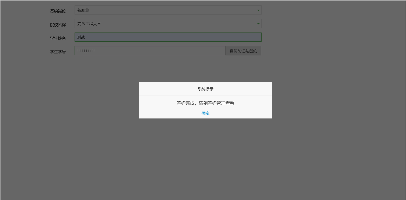 備注:在簽約前請務必在“派遣”“生源信息維護”確認信息與本人信息完全一致,否則不能簽約。