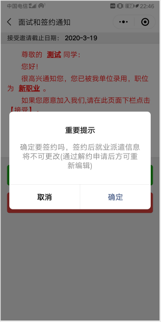 第五步、畢業生收到簽約通知,并選擇是否接受面試邀請。