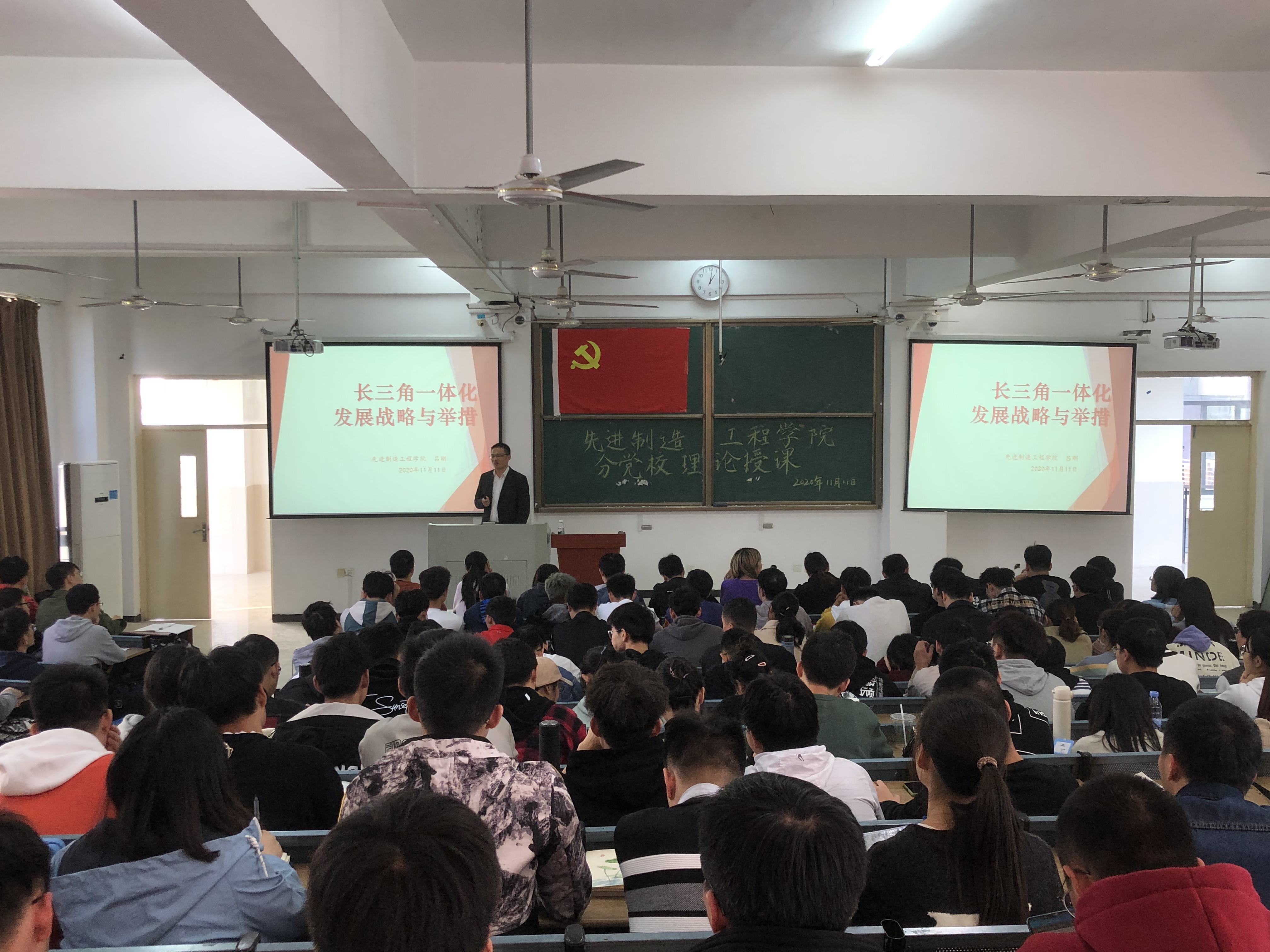 本次課程主要圍繞“長三角一體化發展戰略與舉措”展開。課程伊始,院長呂剛就當代大學生的生活、學習現狀以及對于課余時間的分配,指出決定大學生事業發展層次的關鍵性因素不僅僅是專業技能,還有文化素質修養。緊接著,從中國共產黨的奮斗歷史以及對于入黨誓詞的解讀出發,再次強調了作為黨員和積極分子,應該起到思想引領和先鋒模范作用,時刻銘記“隨時準備為黨和人民犧牲一切,永不叛變”的誓言,表達了對于為了共產主義事業犧牲一切的革命先烈們的尊敬。