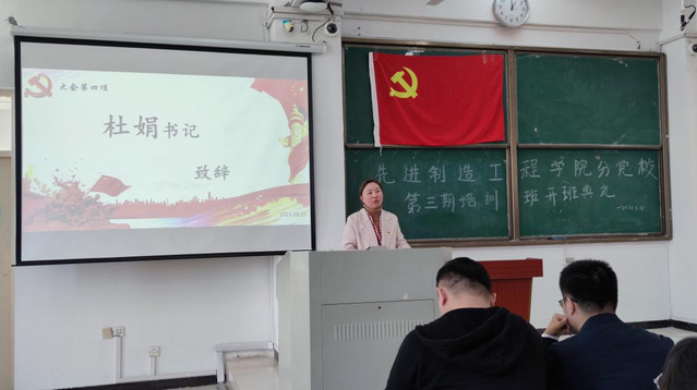 2021325日中午12:40,先進制造工程學院分黨校第期入黨積極分子培訓班開班典禮于38棟3JT教室順利進行。院黨委書記杜娟、黨委副書記李秀娟、各黨支部書記出席了典禮170余名黨校學員參加了典禮,典禮研究生支部書記威力旺老師主持。