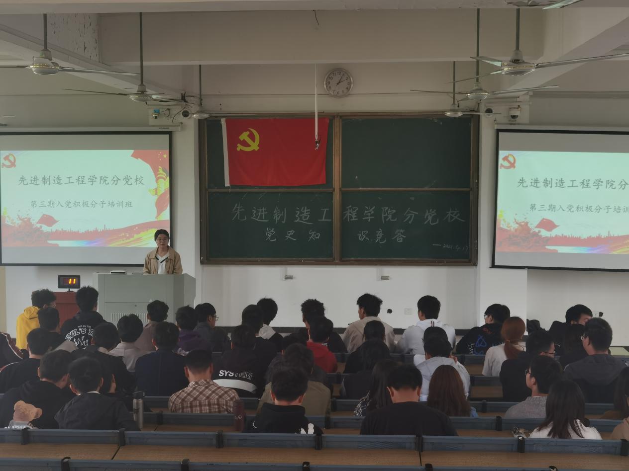 本次先進制造工程學院第三期分黨校黨史知識競答活動,促進了支部成員們進一步學習黨史知識,提高了入黨積極分子們的思想政治素質,以及黨性的修養。(學生記者 劉星雨)