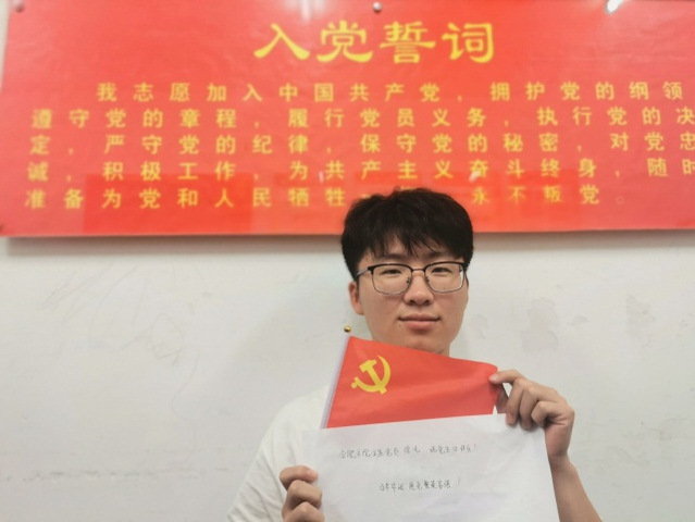 為慶祝黨的百年華誕,繼承黨的光榮傳統和熱血精神,6月29日,在黨的生日到來之際,合肥學院先進制造工程學院電子信息工程學生黨支部開展“與黨旗合影,送生日祝福”特色主題活動。合影取景于教室、教學樓前和操場。同學們紛紛開動腦筋,進行創意合影,表達了對黨的愛與祝福。同時,寫下祝福話語,祝愿偉大的黨和祖國繁榮昌盛。在黨旗前,目光所及皆為華夏,紅旗閃耀是為信仰,廣大學子定會在黨的堅強領導下不忘初心使命,砥礪前行。