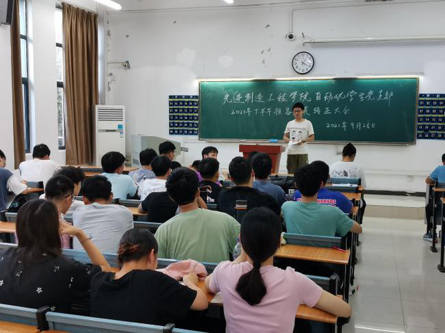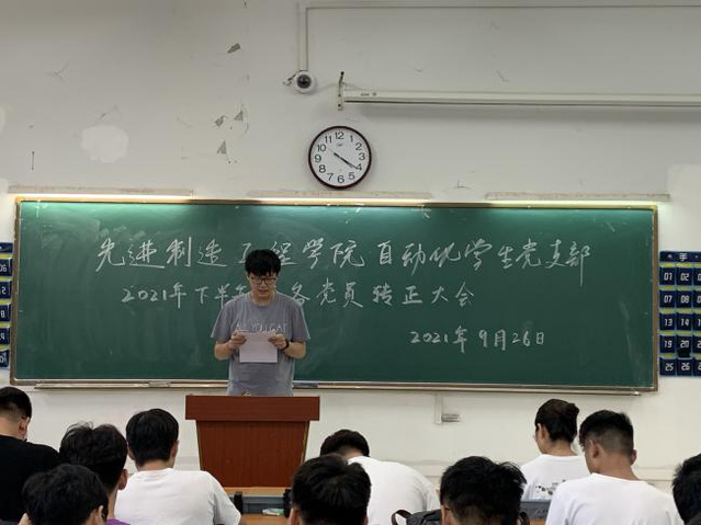 2021年9月26日16:00,先進制造工程學院自動化學生黨支部于36棟103教室召開了黨支部2021年下半年預備黨員轉正大會。自動化學生黨支部書記梅志強老師主持了本次大會,自動化學生黨支部全體黨員和9位群眾代表參加了大會。