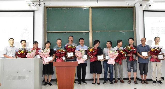 院長呂剛宣讀“從教三十年”表彰教師名單。呂剛、李秀娟、胡學友、高先和等黨委委員分別為26位獲表彰教師頒發了“從教三十年”榮譽獎牌,學生代表為受表彰老師們敬獻鮮花表達了衷心祝福和感謝,感謝老師們對莘莘學子的辛勤栽培和辛苦付出。