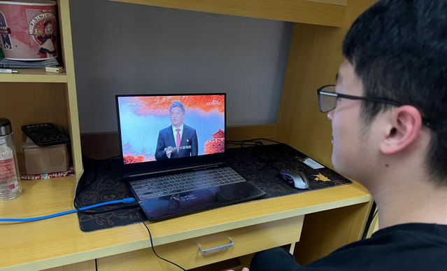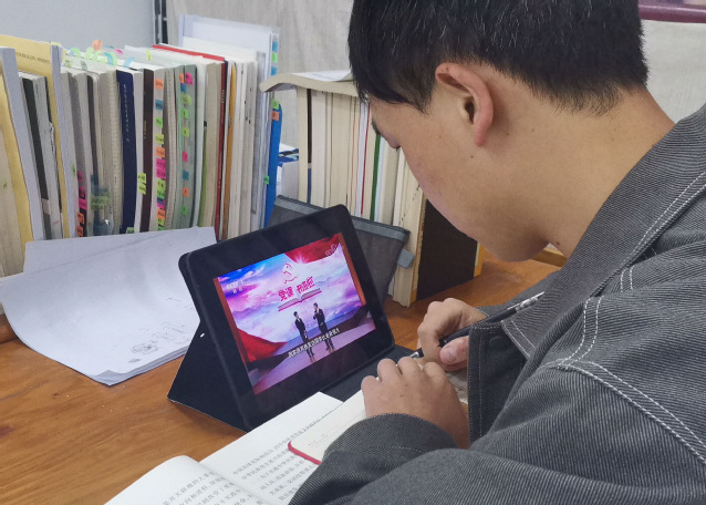 17級機制2+3班黃榮升在宿舍進行線上學習