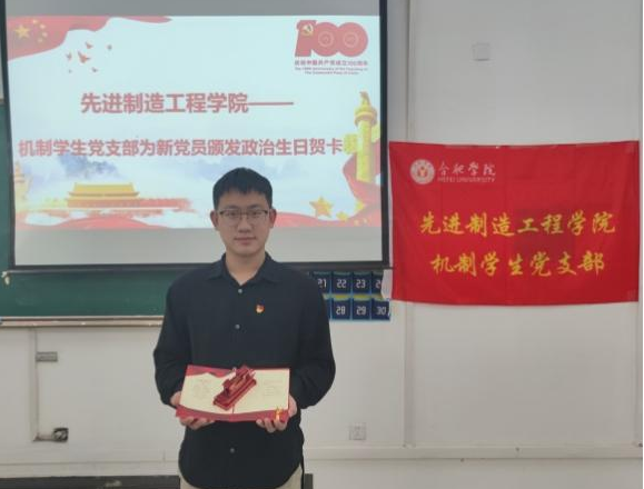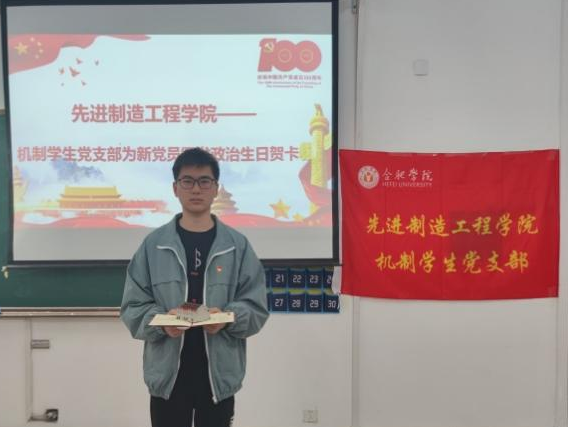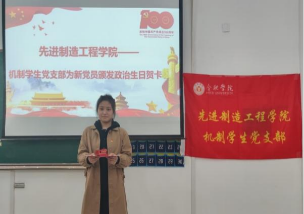 為慶祝建黨100周年,全面貫徹新時代黨的建設要求,不斷豐富創新黨支部組織生活的內容和形式,充分展現新時代黨支部的工作風采,2021年11月4日晚,合肥學院先進制造工程學院機制學生黨支部組織開展了“不忘初心、堅定信念,牢記使命、踐行誓言”黨員政治生日主題活動,為6名正式黨員和25名新黨員過了一個別開生面的“政治生日會”。