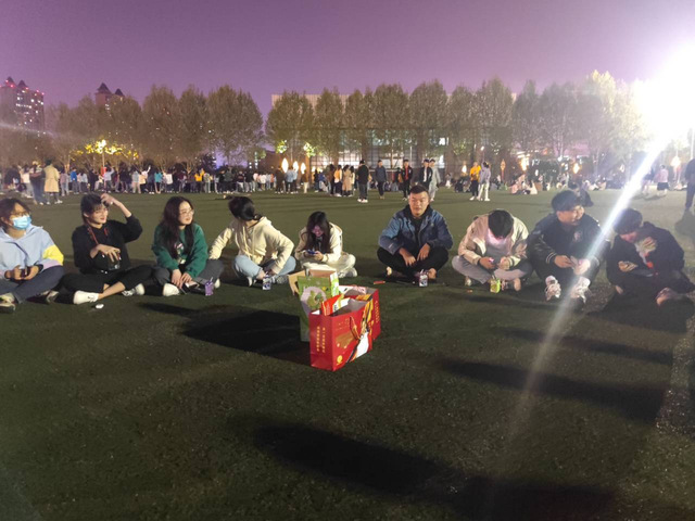 輔導員張傲老師則為他的學生們開展了勞動實踐課程,進行了“疫起跑一跑”活動,井然有序的集體三公里跑步,整齊劃一的號子,體現了同學們的抗疫決心和信心;“疫起唱一唱”直接把活動氣氛推向了一個小高潮,學生圍坐一團進行著拉歌合唱;在“疫起玩一玩”中,踩氣球、劇本殺、狼人殺、誰是臥底等游戲很好的釋放了同學們封校期間的緊張心情。