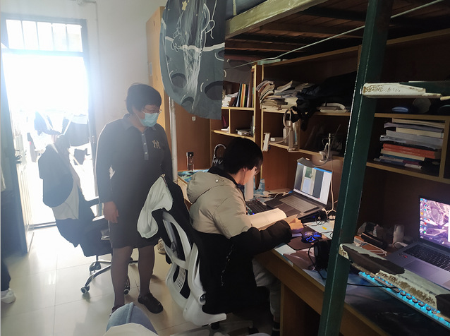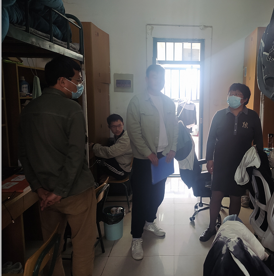 首先來到48棟5樓本科生宿舍,李書記詢問了同學們的學習、生活情況,叮囑大家疫情期間,一定要做好個人防護,同時遵守學校紀律,認真完成網(wǎng)課學習。接著又到48棟10樓,走訪了我院研究生宿舍。白天,大部分的研究生都在實驗室,李書記一行與留宿的個別研究生進行了交談,叮囑他們要搞好宿舍衛(wèi)生,保持宿舍干凈整潔。