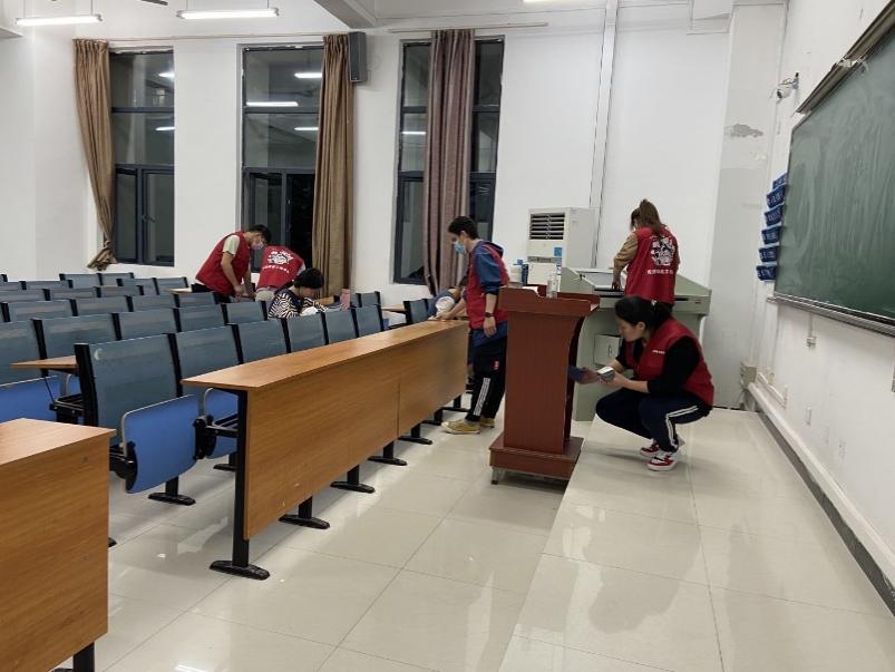 在活動正式開始前,由青年志愿者協會相關工作人員對志愿者開展“志愿者培訓會”,說明相關活動具體安排及注意事項。會議結束后,志愿者三人一組對教室進行清掃,桌角、講臺、黑板槽任何一個微小的細節都被打掃的亮潔如新。打掃結束后,志愿者們輕輕走出教室,只留下一個潔凈的課堂靜待著老師和同學們的到來。