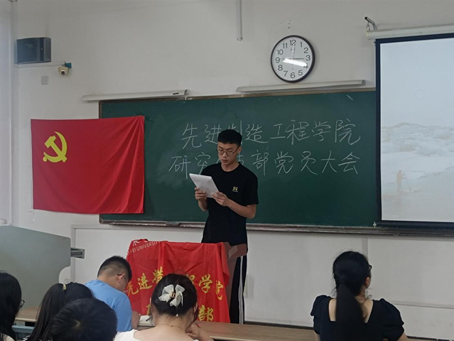 2022531日下午1430,先進制造工程學院研究生黨支部在35114教室舉行2022年上半年黨員發展與轉正大會,共有33名黨員8名發展對象參加會議,會議由研究生黨支部書記沈丹丹主持。