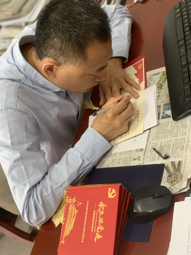 大會第二項,由大會主持人宋文文宣讀本次會議的預備黨員轉正的人員名單,預備黨員們相繼上臺宣讀轉正申請書,匯報在預備期中自己在思想,生活,工作等各方面的情況。隨后由黨員評議其是否具備接收為黨員的條件大會按照流程有條不紊的進行。經過投票表決,胡東成等15位預備黨員均全票通過黨員決議,成為中共正式黨員。黨支部書記朱江向各位轉正的黨員給予肯定和表示祝賀并頒發黨員政治生日卡。