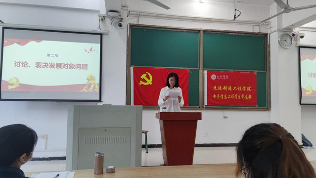 2022年5月21日,我院電子信息工程學生黨支部于36棟2階梯教室召開支部預備黨員發展和轉正大會,本次支部轉正發展大會由電子信息工程黨支部書記朱江主持,并邀請學院黨委委員、副院長胡學友參加。支部全體在校黨員和部分入黨積極分子餐會。