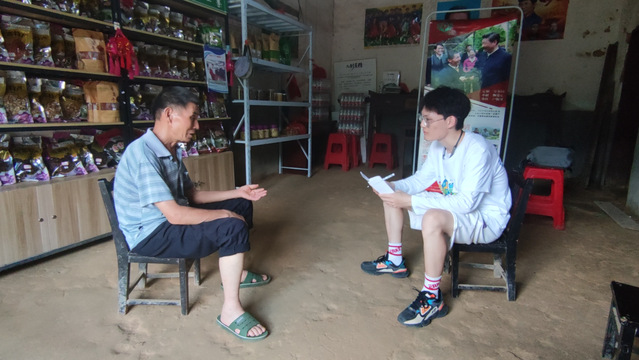 圖為調研成員正在采訪大灣村村民陳澤申