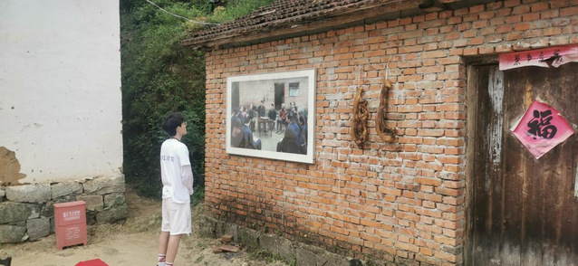 圖為調研成員參觀總書記在陳澤申家召開村民座談會時的照片