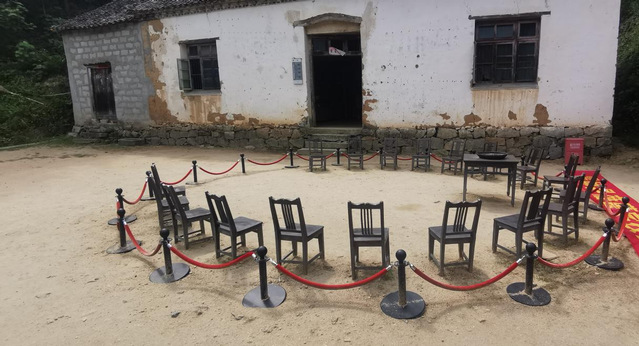 圖為調研成員拍攝的召開村民座談會時所用的桌椅