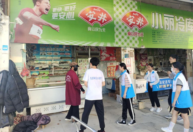 圖為調研人員與其它返鄉大學生在阜南縣進行志愿服務活動