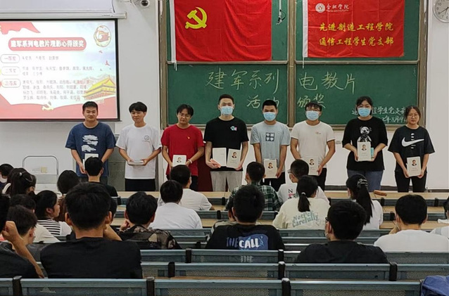 接下來,為建軍系列電教片觀影心得表現優異的同志進行頒獎。在撰寫建軍系列觀影心得過程中,各位同志們語言真摯,思考獨立,展現了當代青年們應有的積極進取的精神。其中優勝獎為朱星茜、齊曼雪、趙景慧3位同志,二等獎為羅靖、陳夢圓等8位同志,優秀獎為唐依凡、張陽等21位同志。今年正逢建軍95周年,通信學生黨支部開展一系列活動旨在激勵支部內的青年黨員自覺把理想信念的火種一代代傳下去,讓革命事業薪火相傳、血脈永續。