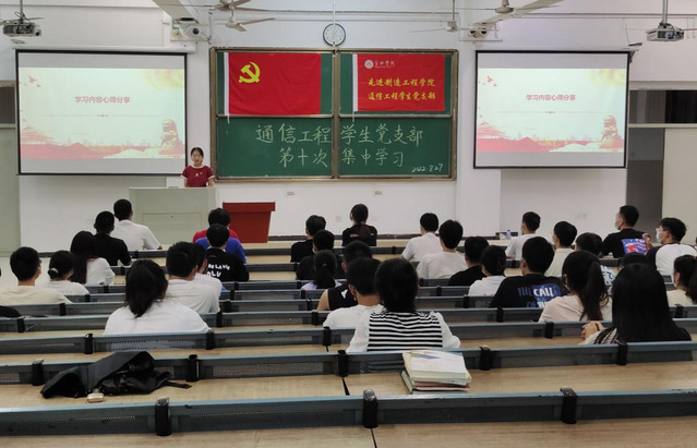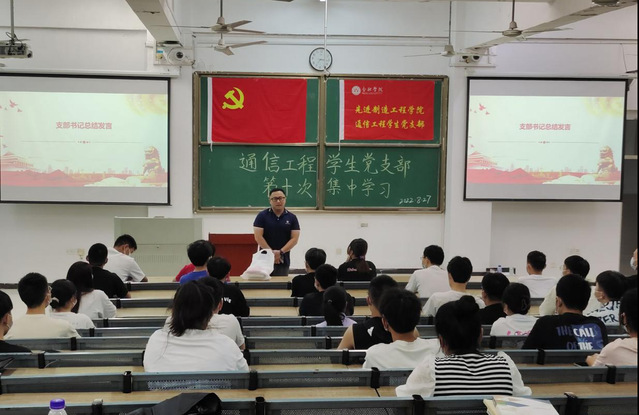 8月27日晚,先進制造工程學院通信工程學生黨支部在36棟1階梯進行了第十次集中學習。本次學習有通信工程學生黨支部的全體黨員和部分積極分子、申請人參與,黨支部書記宋書記出席。