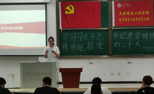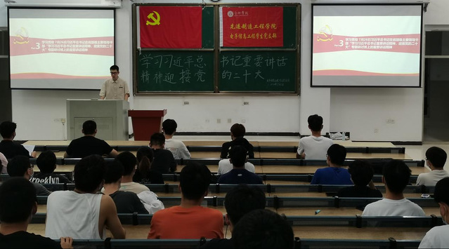 為深刻領悟習近平總書記重要講話精神,踔厲奮發迎接黨的二十大勝利召開,電子信息工程黨支部于2022年8月29日在36棟1JT組織開展“學習習近平總書記重要講話精神,迎接黨的二十大”專題學習交流會。電子信息工程學生黨支部書記朱江出席本次學習交流會。