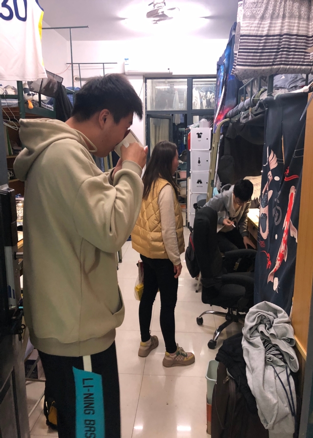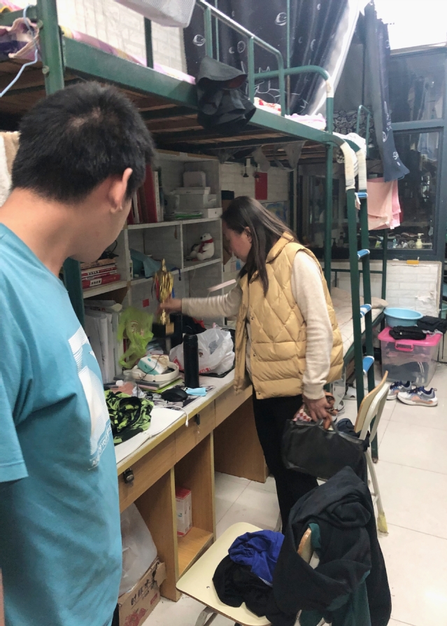 在畢業生宿舍里,杜娟書記仔細詢問同學們的學習、生活情況以及對未來發展規劃,引導同學們做好畢業季的準備,把疫情防控與就業應聘、考研復習同步推進,遇到困惑及時聯系輔導員。鼓勵同學們要多向已就業的同學“取經”,指導考研的同學認真準備。以積極主動的態度去應聘求職,以認真投入的狀態去考研復習。同時對宿舍的文化建設、衛生狀況和安全隱患進行了排查。