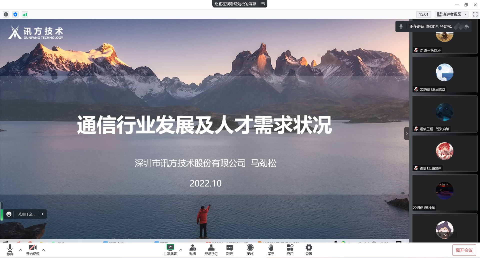 10月26日,專業(yè)邀請(qǐng)了深圳市訊方技術(shù)股份有限公司華中片區(qū)產(chǎn)品交付中心總監(jiān)馬勁松做了《通信行業(yè)發(fā)展及人才需求狀況》的專題報(bào)告。報(bào)告從通信技術(shù)發(fā)展史展開,圍繞5G相關(guān)技術(shù)、5G產(chǎn)業(yè)的發(fā)展、5G產(chǎn)業(yè)的規(guī)模及5G產(chǎn)業(yè)應(yīng)用場(chǎng)景逐一進(jìn)行了介紹,最后,馬總跟同學(xué)們闡述了職業(yè)發(fā)展的路徑,并對(duì)同學(xué)們四年的大學(xué)生活提出了期望。