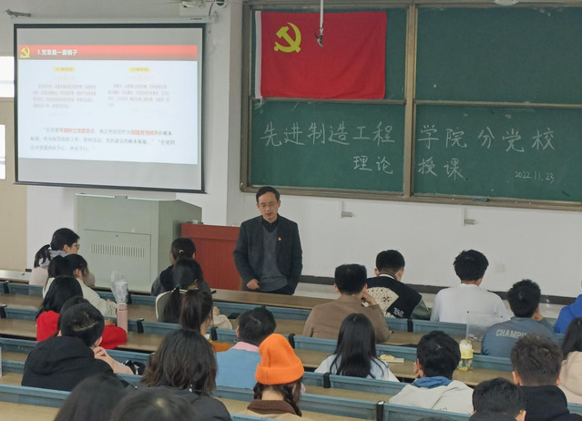 為深入學習宣傳貫徹黨的二十大精神,切實把廣大青年學生的思想和行動統一到黨的二十大精神層面上來,20222年11月23日中午12點40分,先進制造工程學院分黨校邀請了馬克思主義學院副院長馬保衛教授為第六期入黨積極分子培訓班講授“全面深化學習新黨章”的專題黨課。本次授課由機制學生黨支部書記威力旺老師主持,先進制造工程學院分黨校第六期入黨積極分子培訓班76名學員參加本次理論授課。