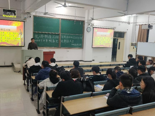 大會開始,朱俊炎、胡長鑫、李康、陳航宇、歐陽紫怡、饒承志、王祥濤、謝大為、張霞、李強強、朱德宇、許澤忠、關健、張勝等14位預備黨員依次上臺發言,主要從思想、學習、工作、生活介紹了自己預備期一年來的表現,每位預備黨員都表達出對中國共產黨的熱愛以及成為一名中共正式黨員的強烈渴望,他們表示,一年來,自己認真學習的黨的基本理論知識,自覺學習習近平新時代中國特色社會主義思想,自身黨性修養有了一個明顯的提升。中國共產黨是中國工人階級的先鋒隊,是中國人民和中華民族的先鋒隊,自己很有幸成為一名中共黨員。在平時的學習和工作中,時時刻刻記得要起模范帶頭作用,為廣大的同學熱心服務。生活上艱苦樸素、勤儉自強,如果能夠按時轉正,將繼續不忘初心、牢記使命,以奮發有為的精神狀態和飽滿的精神熱情為共產主義事業而奮斗!