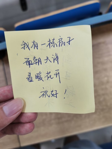 “感恩有你,奮發同行” 活動是通過紙條為他人或自己送上一句鼓勵的話,在展板上進行展示,同學們集中觀看展板上的內容并互相點評。此活動幫助同學們互相激勵,并進行正確的心理調適。