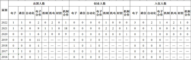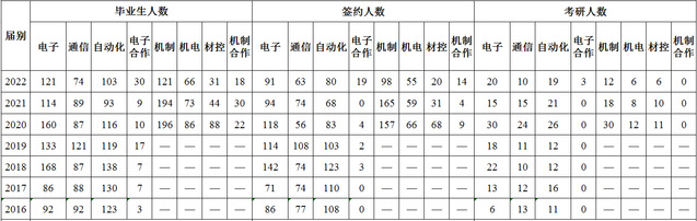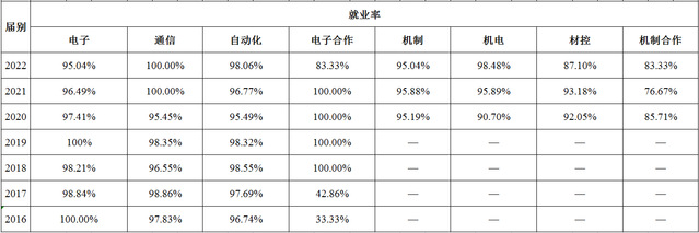 先進(jìn)院原電子系2016—2022年各專業(yè)就業(yè)率統(tǒng)計