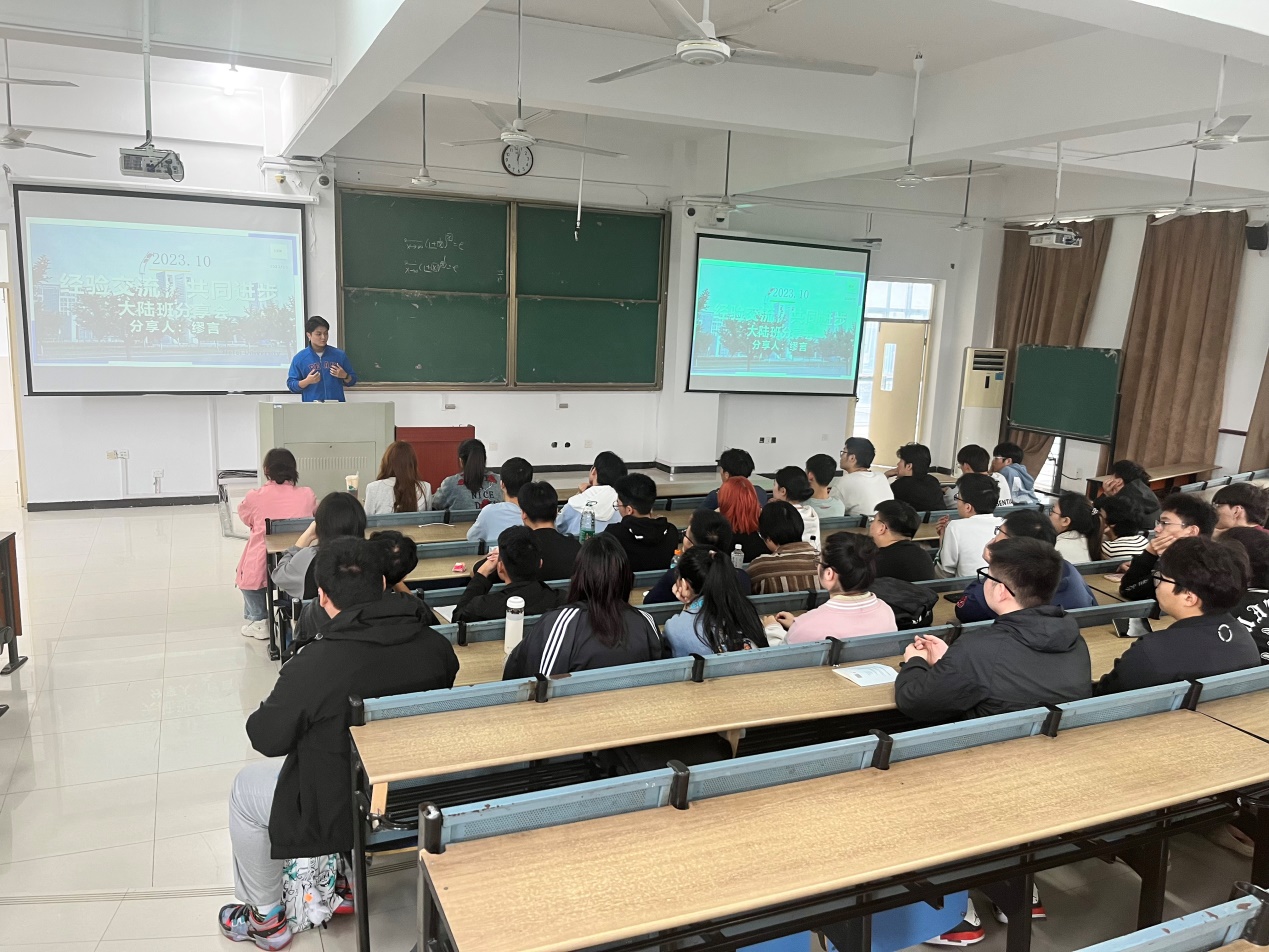 1011日中午,合肥學(xué)院大陸班優(yōu)秀畢業(yè)生繆言同學(xué)經(jīng)驗(yàn)交流會(huì)在38-3jt教室順利舉行。繆言同學(xué)作為16級(jí)優(yōu)秀畢業(yè)生,為20級(jí)、22級(jí)和23級(jí)大陸班同學(xué)分享了自己在本科,碩士階段學(xué)習(xí)和生活的經(jīng)驗(yàn),以及對(duì)博士階段的展望。