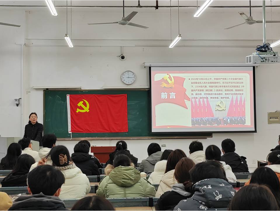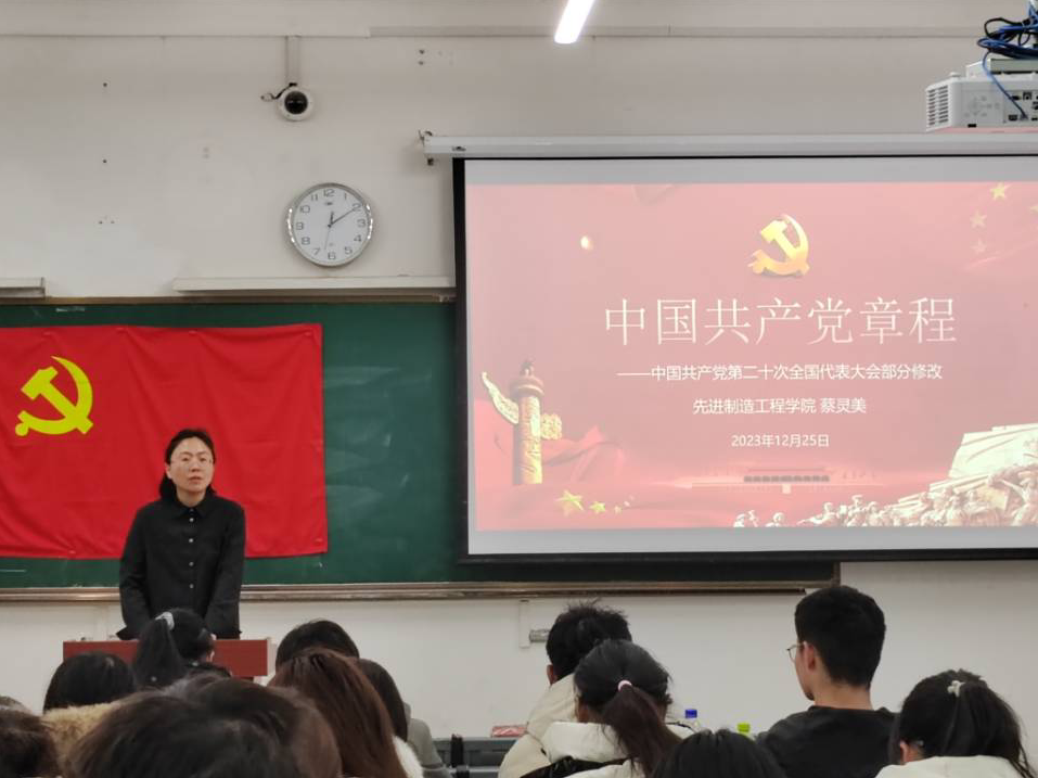 為深入學(xué)習(xí)習(xí)近平新時(shí)代中國特色社會(huì)主義思想、貫徹落實(shí)黨的二十大精神,2023年12月25日中午,我院黨委副書記、紀(jì)委書記蔡靈美老師在35棟101教室為自動(dòng)化學(xué)生黨支部和學(xué)院2023年新發(fā)展黨員開展了以“黨的二十大《中國共產(chǎn)黨章程》修改”為主題的黨課教育培訓(xùn)。