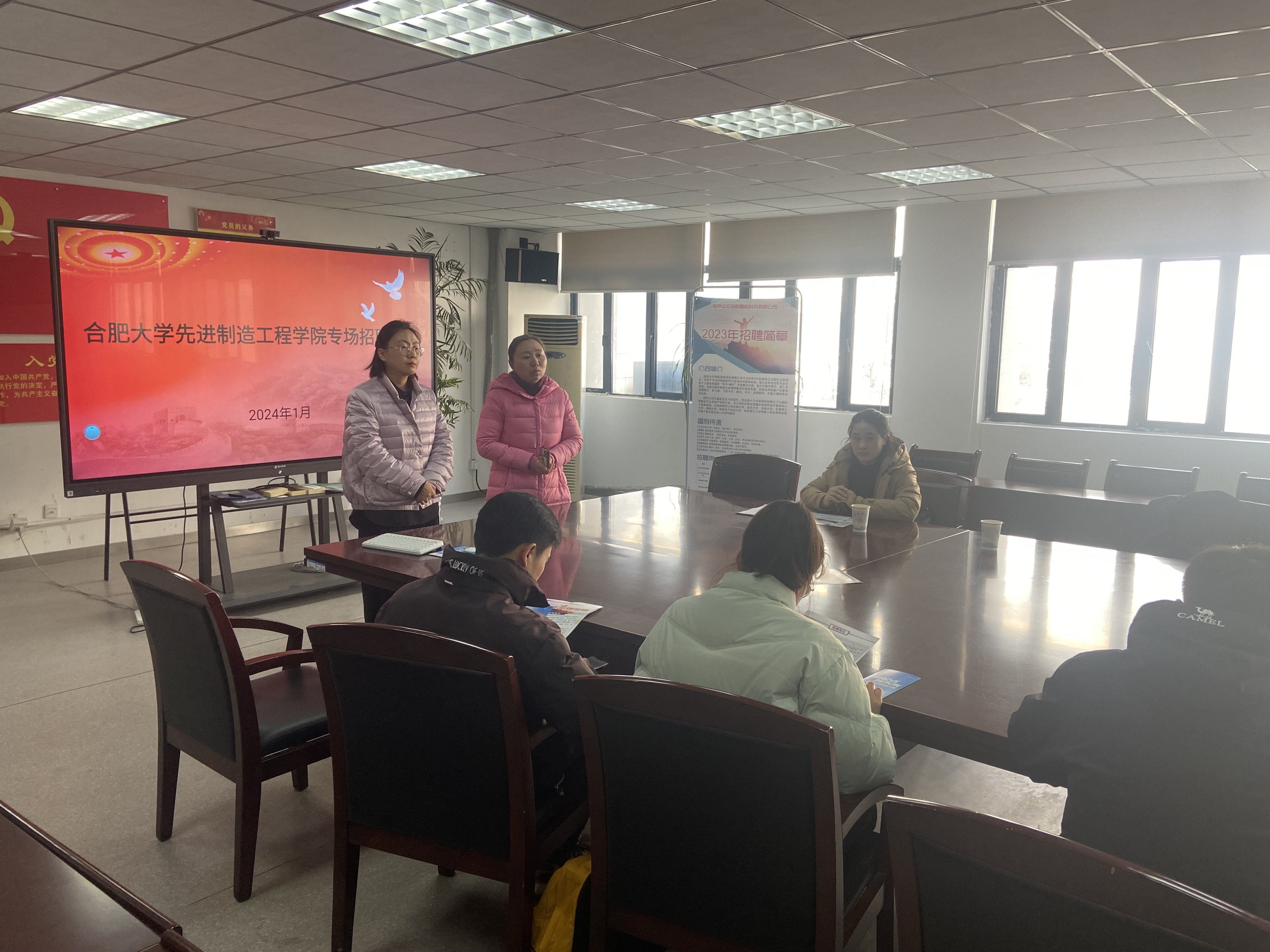 為做好應屆畢業生高質量就業工作,更好的服務畢業生就業需求,2024年1月4日先進制造工程學院于38棟305會議室舉辦南陵縣專場招聘會,本次招聘會是我院與南陵縣進行人才對接招聘,包括安徽舜富精密科技股份有限公司、安徽雅力士智能科技有限公司、安徽古麒絨材股份有限公司、安徽實貝自動化科技有限公司等共10余家招聘單位,招聘需求涉及我院多個專業,為我院畢業生提供就業崗位50個,288個人才需求。我院黨委書記杜娟、副書記蔡靈美、就業聯絡員張傲及部分畢業生參加招聘會。