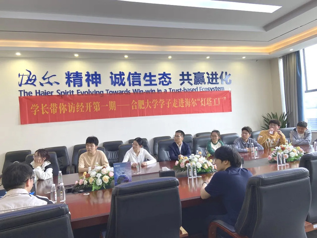 為進一步貫徹教育方針,促進學生間相互交流2024年4月29下午,合肥大學先進制造工程學院八位優秀學子在團委副書記鐘倫鎖的帶領下參加“學長帶你訪經開第一期——合肥大學學子走進海爾燈塔工廠”活動,經開區團工委書記黃麗俠出席活動。