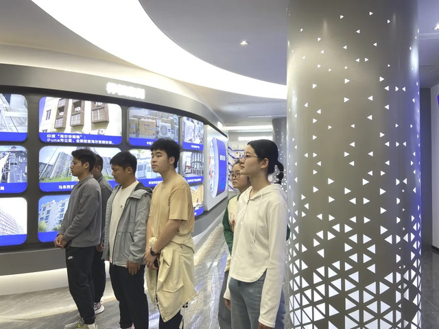 次活動中,同學們首先參觀海爾精工名匠坊實訓基地,進行沉浸式觀摩體驗。這不僅讓大家對企業文化有更加直觀的了解,同學們提供一個實踐學習的平臺,激發同學們對未來的思考和對職業規劃的期待,助力同學們在心理上有所成長,可以更好面對未來的挑戰。
