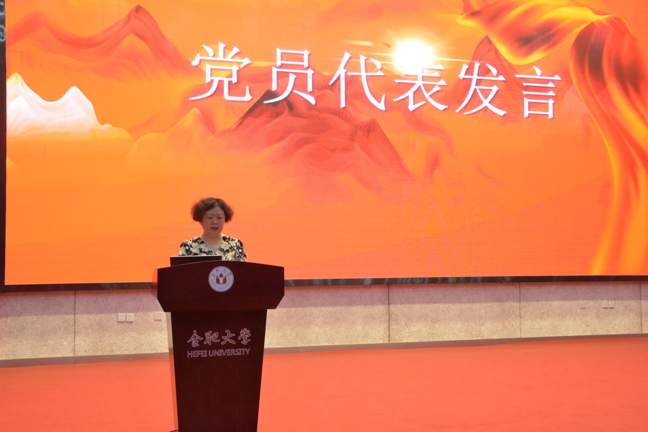 自動化系教研室陳克瓊同志和智能制造工程系金飛翔同志分別作為優秀共產黨員代表上臺進行了發言。他們分享了在強化黨性修養、提升思想引領、發揮先鋒作用、服務人才培養等方面的心得體會,生動彰顯了新時代中國共產黨人的政治品格、價值追求、精神風范和責任擔當。