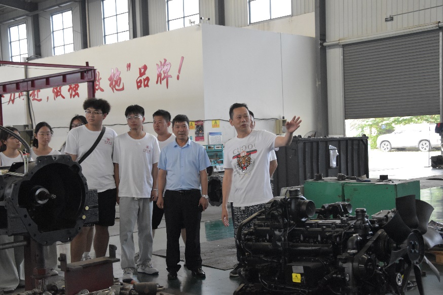 上午,實踐團隊分為兩組行動。一支隊伍于8點前往安徽泗州拖拉機制造有限公司開展調研活動。公司朱總為團隊成員介紹了當地拖拉機制造產業的發展狀況、產業發展所面臨的困境以及拖拉機制造產業發展的必要性,并表達了對新一代的殷切期望。