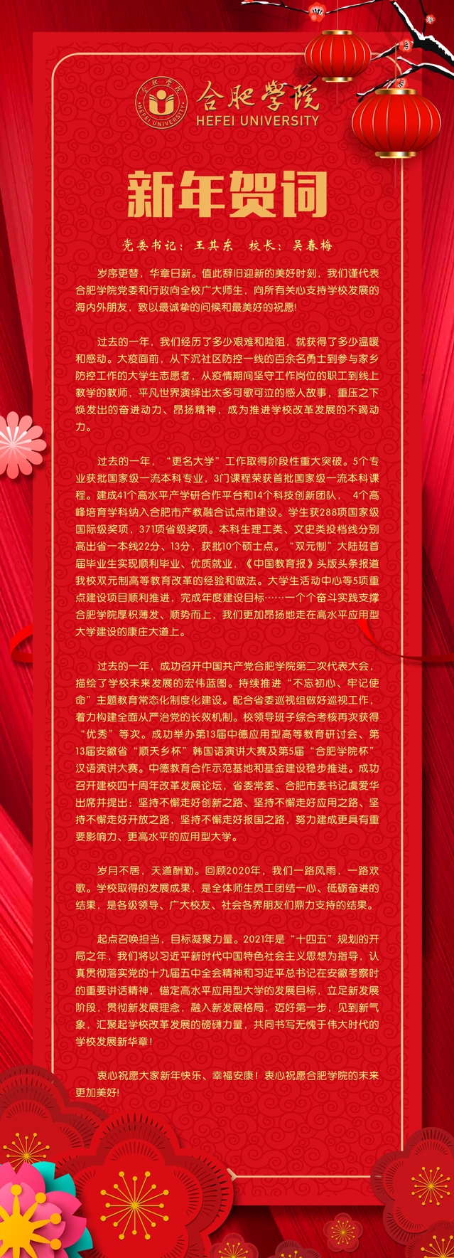 We sincerely wish you all a happy new year! We sincerely wish Hefei University a better future!