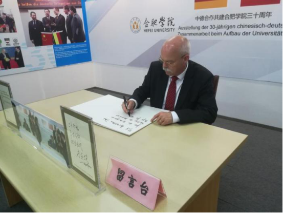 Dr. Clemens von Goetze, German Ambassador to China, visits HFU on July 8, 2019. Dr. Cai Jingmin, Chair of HFU Council and Dr. Wang Qidong, President of HFU, warmly welcome him and his delegation.