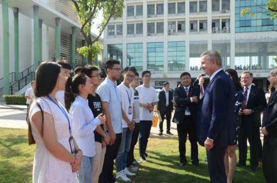 Christian Wulff, former President of Germany, as well as chairman of the Global SME Alliance , visits HFU on the morning of September 21st, 2019. Wang Qidong, President of HFU, meets him and his delegation.