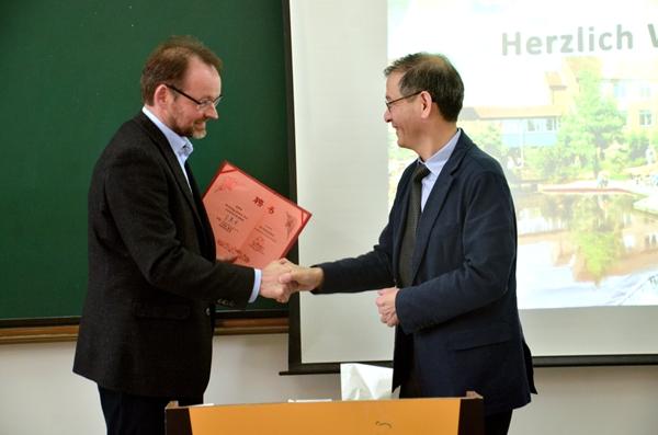 Bei dem Treffen unterzeichneten Wang Qidong und Wang Xiaoji eine Vereinbarung und verliehen den Gastprofessoren Wang Xiaoji und Dr. Henning Kautz eine Ernennungsurkunde der Universit?t Hefei.