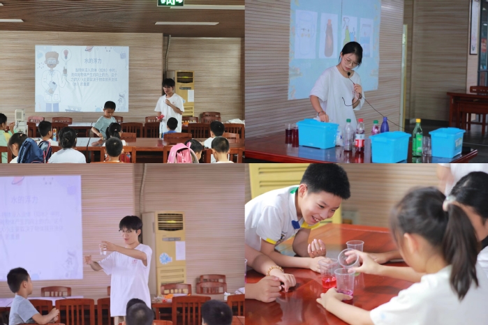 活動(dòng)中,志愿者們讓小朋友自主參與科學(xué)實(shí)驗(yàn),探究實(shí)驗(yàn)原理,在動(dòng)手的過(guò)程中體驗(yàn)科學(xué)的奧秘與樂(lè)趣,營(yíng)造崇尚科學(xué)、推動(dòng)創(chuàng)新的良好氛圍。實(shí)驗(yàn)課上,志愿者通過(guò)“自制簡(jiǎn)易凈水器”,讓小朋友們理解水凈化的基本原理,掌握簡(jiǎn)單的凈水技術(shù);“紫甘藍(lán)變色”實(shí)驗(yàn)將紫甘藍(lán)水放入不同溶液中,觀察紫甘藍(lán)水變色的現(xiàn)象;“水的浮力”課程中,飄在水上的回形針揭示了水的張力內(nèi)在原理,引發(fā)了小朋友們對(duì)實(shí)驗(yàn)和科學(xué)的好奇心與興趣。一系列實(shí)驗(yàn),讓小朋友們連連稱(chēng)贊,教室里一片歡聲笑語(yǔ)。