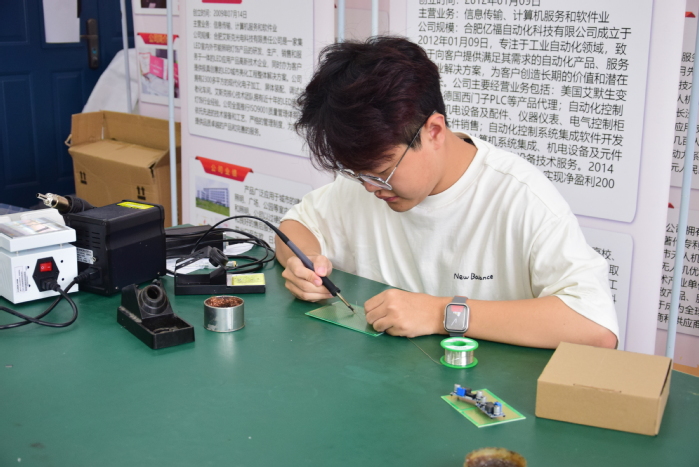 在38棟506創(chuàng)新實(shí)驗(yàn)室,2022級(jí)電子信息工程專業(yè)學(xué)生孫曉偉正全力備戰(zhàn)兩大賽事:全國(guó)大學(xué)生電子設(shè)計(jì)競(jìng)賽(安徽賽區(qū))及中國(guó)國(guó)際大學(xué)生創(chuàng)新大賽省賽。在鐘倫鎖老師的悉心指導(dǎo)下,他與團(tuán)隊(duì)其他14人一同打磨名為“池鳴天下——新能源電池綜合服務(wù)平臺(tái)”的項(xiàng)目,目前,該項(xiàng)目已榮獲校賽金獎(jiǎng),省賽計(jì)劃書也已順利提交。此外,在電設(shè)競(jìng)賽上,他與兩位隊(duì)友在李翠花老師的指導(dǎo)下并肩作戰(zhàn),自7月5日起,由李老師帶領(lǐng)進(jìn)行三周密集培訓(xùn),旨在提升競(jìng)賽實(shí)力。作為雙賽領(lǐng)隊(duì),孫曉偉深感責(zé)任重大,他自我鞭策:“我將全身心投入培訓(xùn),不斷精進(jìn),直至賽事圓滿落幕。”