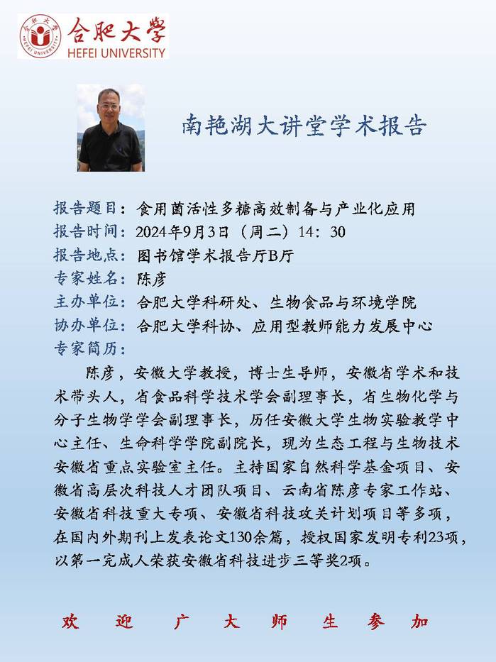 【南艷湖大講堂】食用菌活性多糖高效制備與產(chǎn)業(yè)化應用