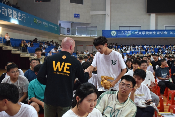 大眾學院招生會上,黨委委員、教務處處長、大眾學院院長王曉峰介紹了大眾學院的發展歷程、建設成果以及人才培養模式,并講解了智能制造工程、數據科學與大數據技術、新能源材料與器件三個“雙元制”專業的學科建設情況。大眾中國學習與發展中心文化及人力資源溝通部高級總監婁屹介紹了大眾汽車的企業規模、產業基地、研發中心、企業文化等。大眾汽車(安徽)有限公司首席人力資源官邵劍介紹了大眾汽車在合肥的發展歷程以及發展遠景規劃。大眾學院學生代表陳政揚、熊文澤和程夢雪分享了學習生活感受,校友趙飛洋分享了在大眾安徽的工作經歷。大眾學院直屬黨支部書記宣躍文和大眾中國學習與發展中心負責人潘欣共同為同學們介紹了招生計劃、參選條件、選拔流程和報名方式,并逐一解答了新生的疑問。