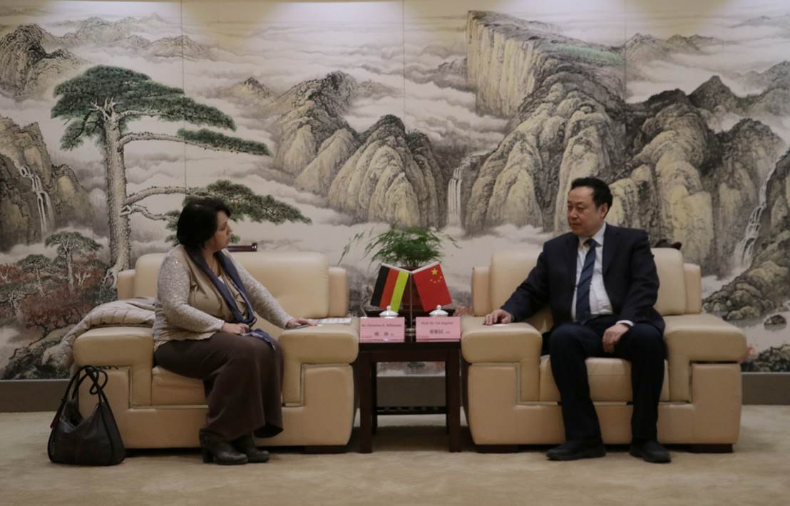 2019年1月29日,德國駐上海領事館總領事歐珍女士(Dr. Christine D. Althauser)一行來訪我校,校黨委書記蔡敬民于八樓東貴賓室會見了來賓。