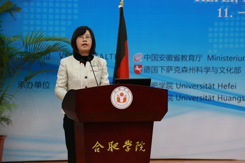 開幕式上,合肥市副市長吳春梅為研討會(huì)致開幕辭。吳春梅對中德雙方相關(guān)領(lǐng)導(dǎo)的到來表示誠摯的歡迎,并簡要介紹了合肥市與合肥學(xué)院的基本情況。合肥市是一座有著2200多年歷史的文化古城,作為中國科教基地之一、國家科技創(chuàng)新試點(diǎn)城市,近年來,合肥市的經(jīng)濟(jì)社會(huì)得到快速發(fā)展。合肥學(xué)院作為安徽省與合肥市共建的一所應(yīng)用型本科高校,堅(jiān)持應(yīng)用型辦學(xué)定位,充分發(fā)揮自身優(yōu)勢,不斷加強(qiáng)與德國高校的深入合作,專業(yè)設(shè)置及人才培養(yǎng)方面與地方經(jīng)濟(jì)相適應(yīng),為合肥經(jīng)濟(jì)社會(huì)發(fā)展培養(yǎng)大量的應(yīng)用型人才,在應(yīng)用型高等教育中發(fā)揮了良好的示范與引領(lǐng)作用。