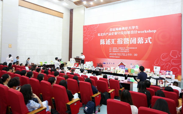 7月17日,在安徽省人民政府臺灣事務(wù)辦公室、合肥市人民政府、合肥市人民政府臺灣事務(wù)辦公室、宿州市人民政府、宿州市農(nóng)業(yè)委員會的大力支持下,由合肥學(xué)院、臺灣銘傳大學(xué)、臺灣云林科技大學(xué)共同主辦,合肥市人民政府臺灣事務(wù)辦公室、宿州市人民政府協(xié)辦,安徽深裝合大工業(yè)設(shè)計有限公司承辦的“首屆海峽兩岸皖北農(nóng)產(chǎn)品企業(yè)VI及包裝設(shè)計workshop”項目,在兩岸80余名師生的共同努力下,在合肥學(xué)院圖書館學(xué)術(shù)報告廳圓滿落幕。安徽省臺辦副主任汪泗淇,合肥市委副書記、“紀念劉銘傳首任臺灣巡撫130周年”系列活動合肥市籌備領(lǐng)導(dǎo)小組組長凌云,合肥學(xué)院黨委書記蔡敬民,校長張文兵,黨委副書記丁明,合肥市委副秘書長毛萬里,安徽省臺辦交流聯(lián)絡(luò)處副調(diào)研員邵琳,安徽省教育廳外事處副調(diào)研員孔德俊,宿州市農(nóng)委副主任段梅英,合肥市臺辦副主任胡衛(wèi)平,宿州市農(nóng)委產(chǎn)業(yè)辦主任周澍,臺灣銘傳大學(xué)教授林建華、方菁容等出席。陳述匯報暨閉幕式由合肥學(xué)院副校長劉建中主持。