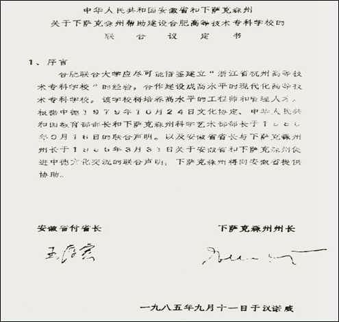 1985年,安徽省人民政府與德國下薩克森州政府簽署協議,共建合肥聯合大學