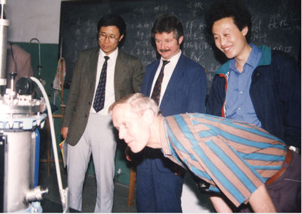 1987年,德國下州議長布蘭克先生率團來訪,在友誼樹前與安徽省人大與學校領導合影