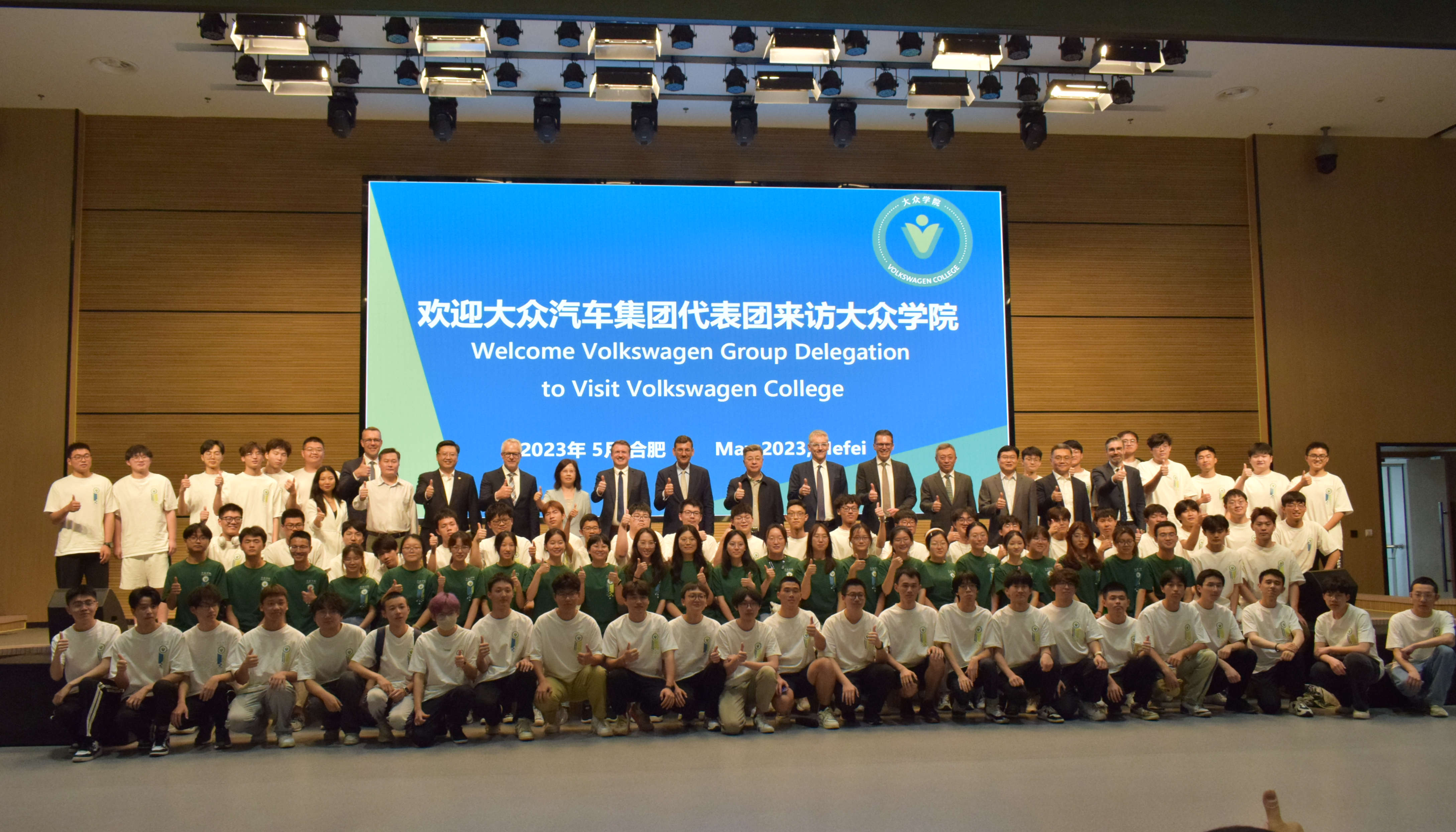 2023年5月26日,吳春梅校長在學(xué)校歡迎德國大眾汽車集團(tuán)管理董事會成員、人力資源管理負(fù)責(zé)人柯利安Gunnar Kilian率領(lǐng)的代表團(tuán),深入中德教育合作示范基地,交流大眾學(xué)院的建設(shè)。合肥市委副書記路軍陪同訪問,并視察大眾學(xué)院建設(shè)進(jìn)展。